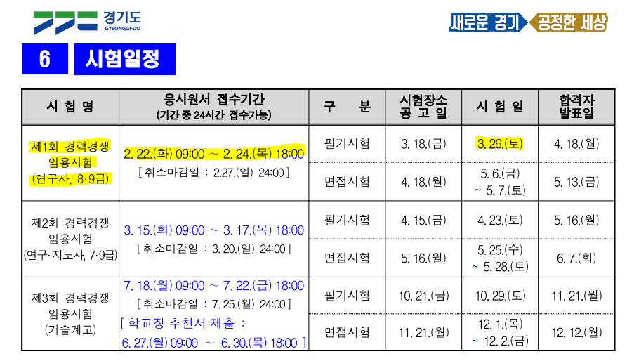 경기도 경력경쟁 시험의 경우 상반기 말고도 하반기에도 꾸준히 시험이 있었습니다.